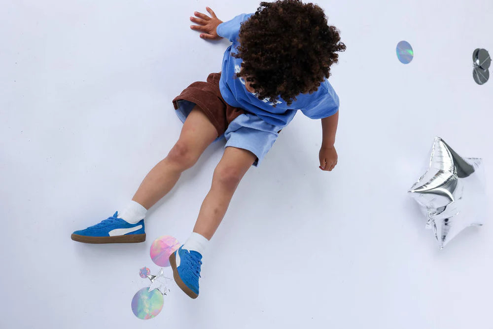 Made with 100% terry towelling fabric. A relaxed fit, with an elastic waistband for comfort. Featuring contrasting blue and chocolate and contrasting piping down each side for a playful touch.