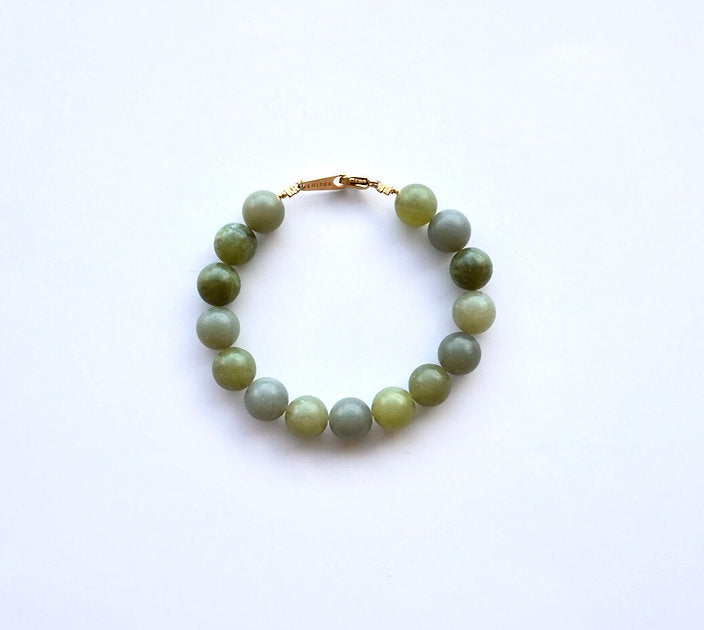 Round green Jade beads, 24kt gold plated or stainless steel beads.