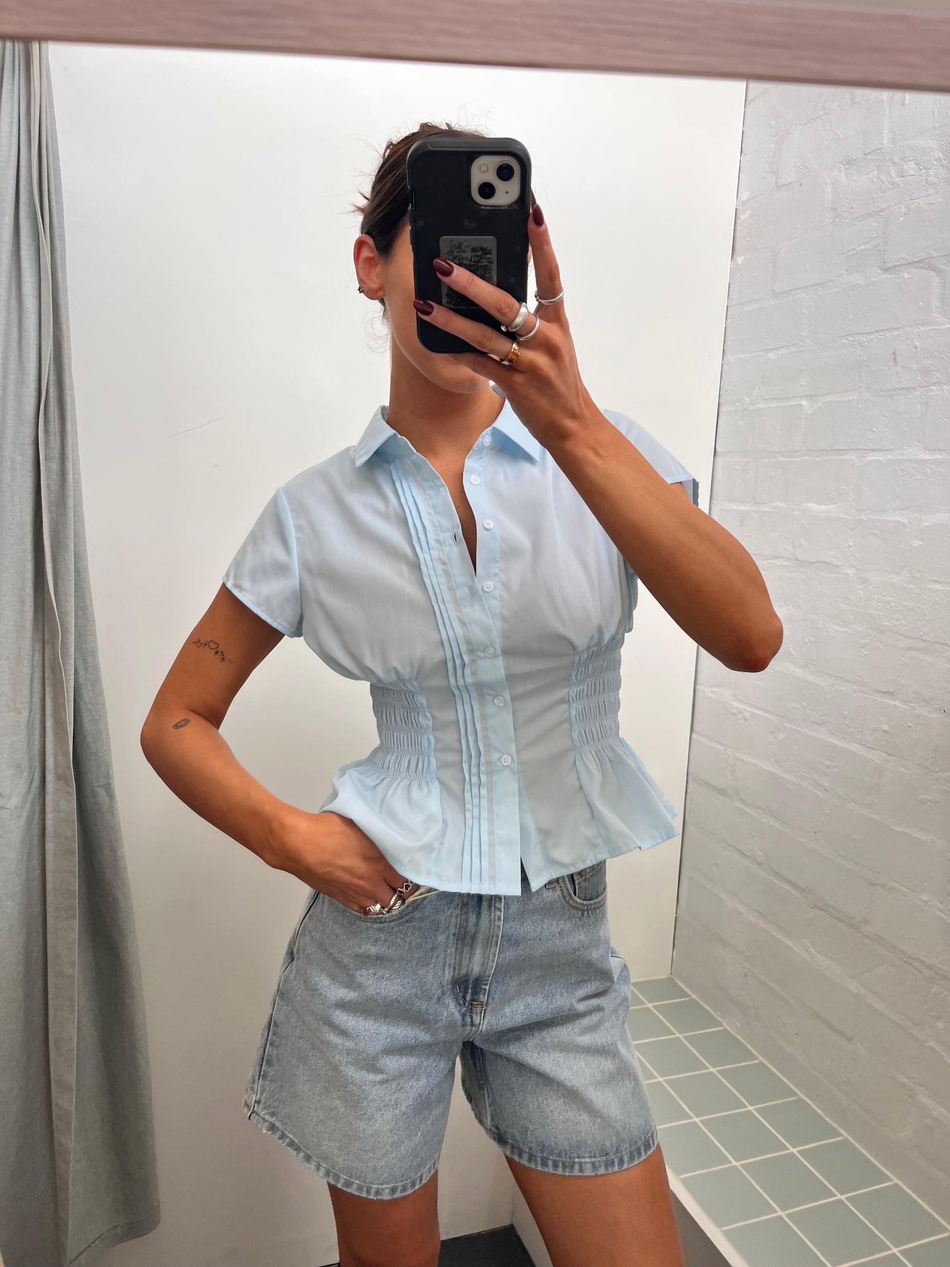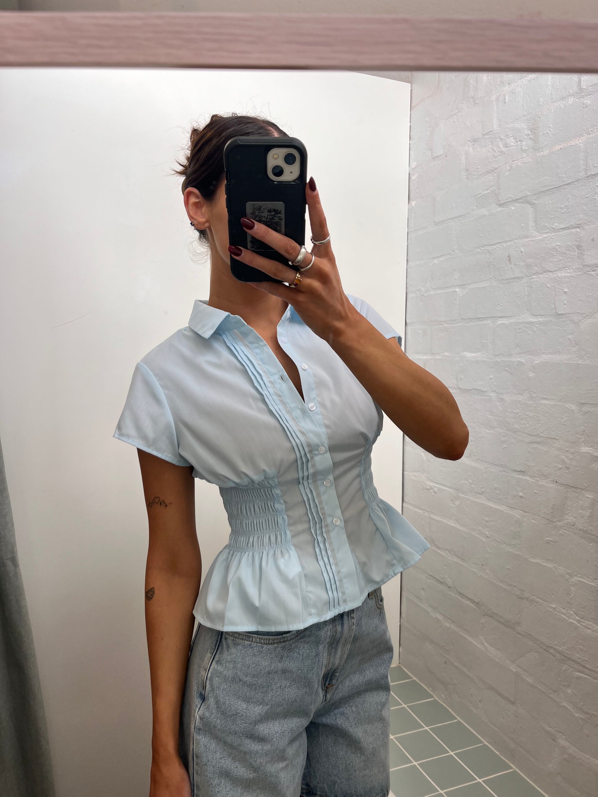 Sky Blue Ruched Shirt