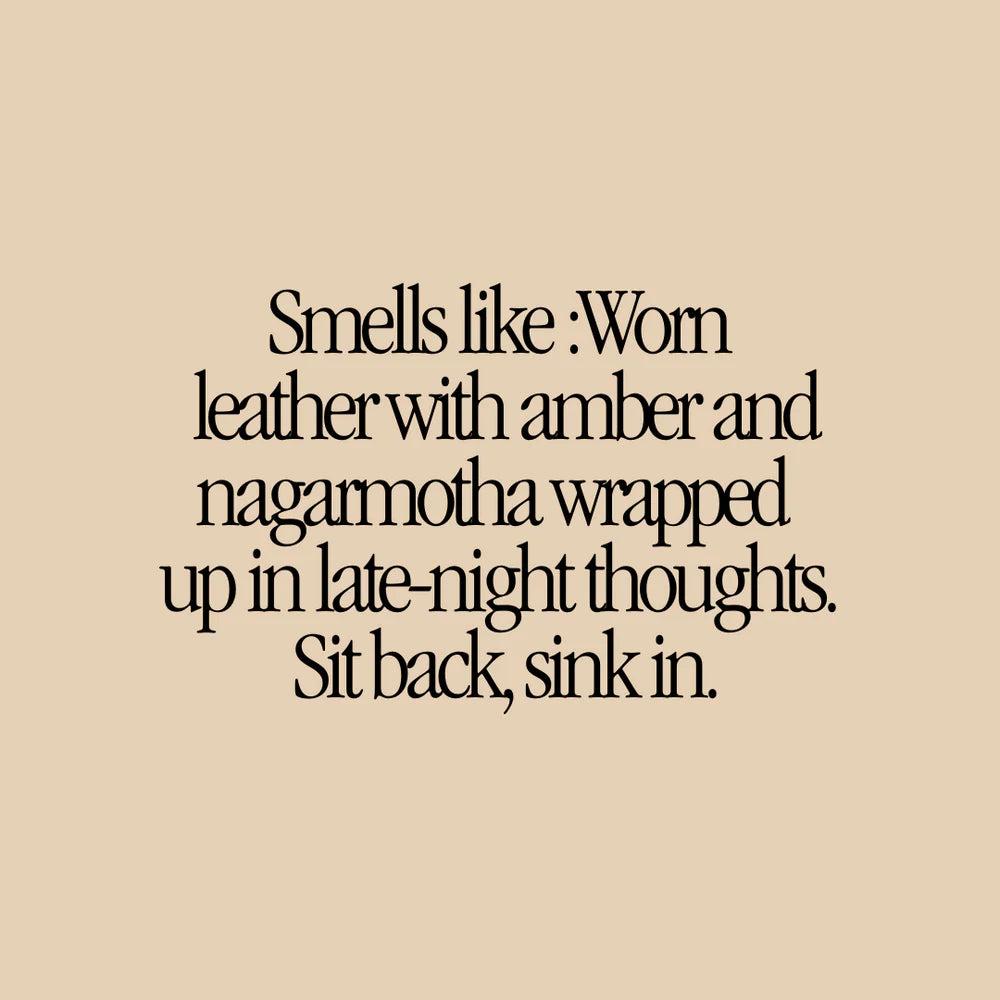 (Smells like) worn leather and incense smoke - wrapped in amber, wrapped in thought. Sit back. Sink in. Dim. Still. Unfiltered.