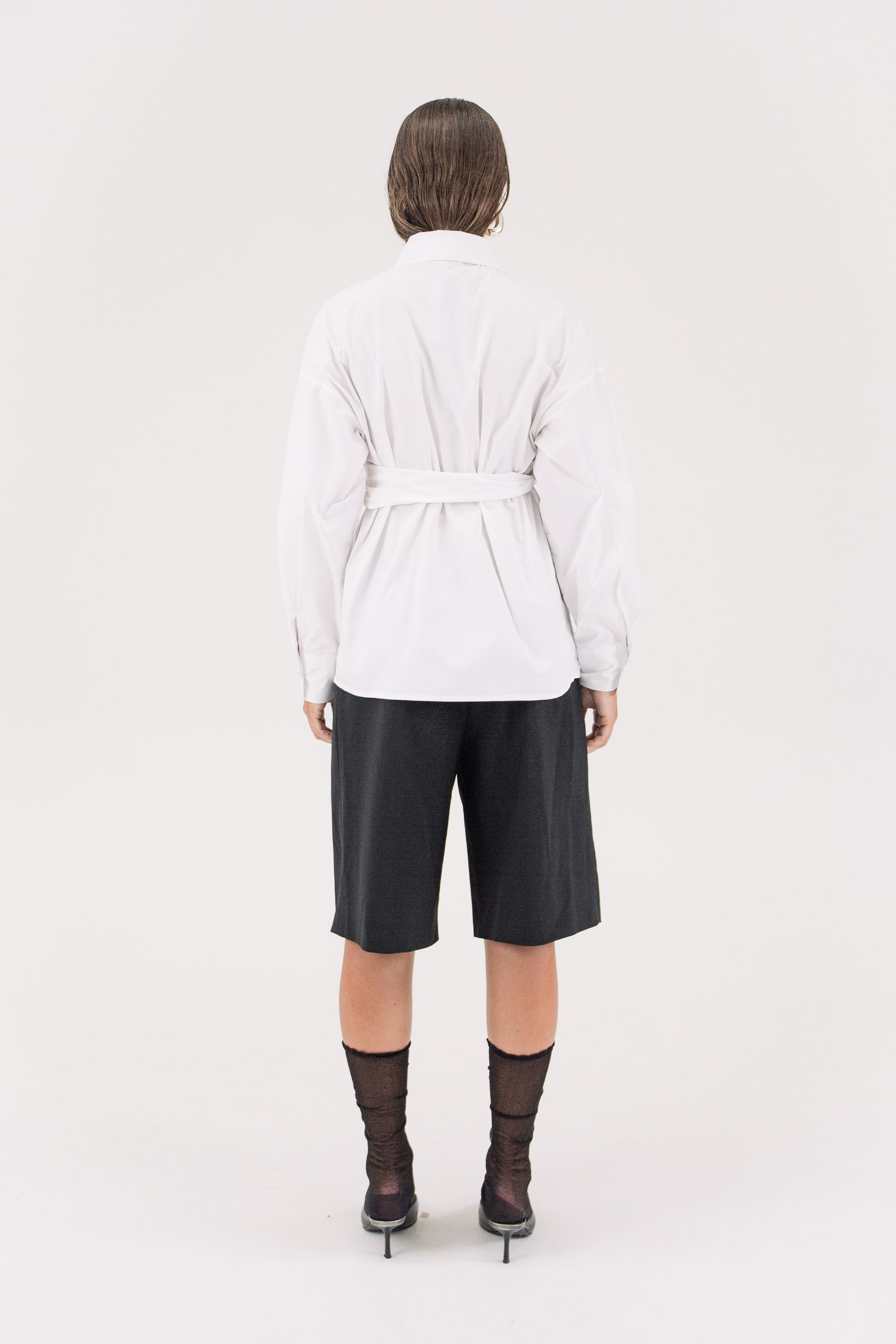Meet your new wardrobe essential—the Business Wrap Shirt by Modalità Vacanza. This versatile piece is the epitome of effortless elegance, designed to transition seamlessly from Desk to Dusk. Crafted with meticulous attention to detail, it features long, chic cuffs that add a touch of sophistication to your look.
