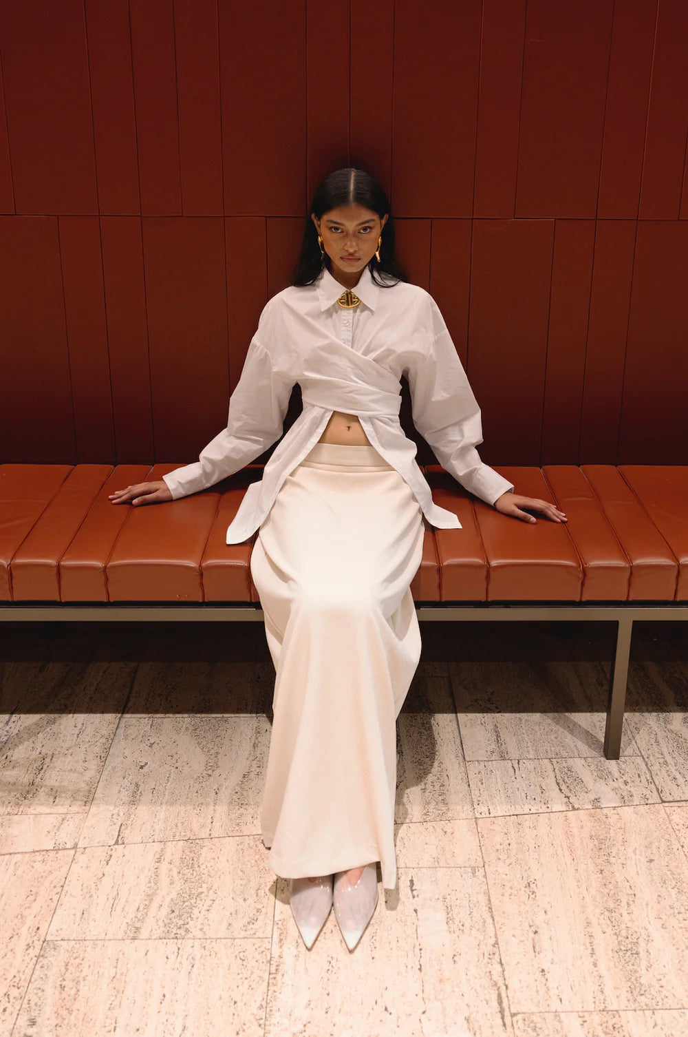 Whether you're pairing it with our Tailored Maxi Skirt for a polished work ensemble or dressing it down with your favourite jeans for a casual coffee date, this wrap shirt is all about versatility. The wrap silhouette accentuates your waist and can be worn at 5 different adjustments if you prefer a looser fit.