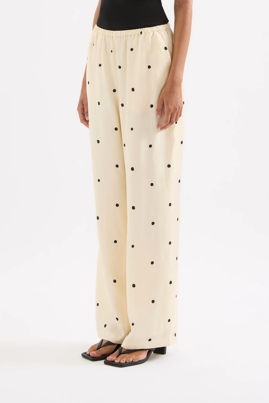 The Xander Pant is made in our exclusive Xander print from a lightweight lycocell blend fabrication. It has a smooth, drapey hand feel with a high-rise fit and wide leg silhouette. It features an elastic waistband for comfort and side seam pockets.